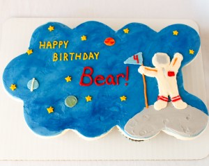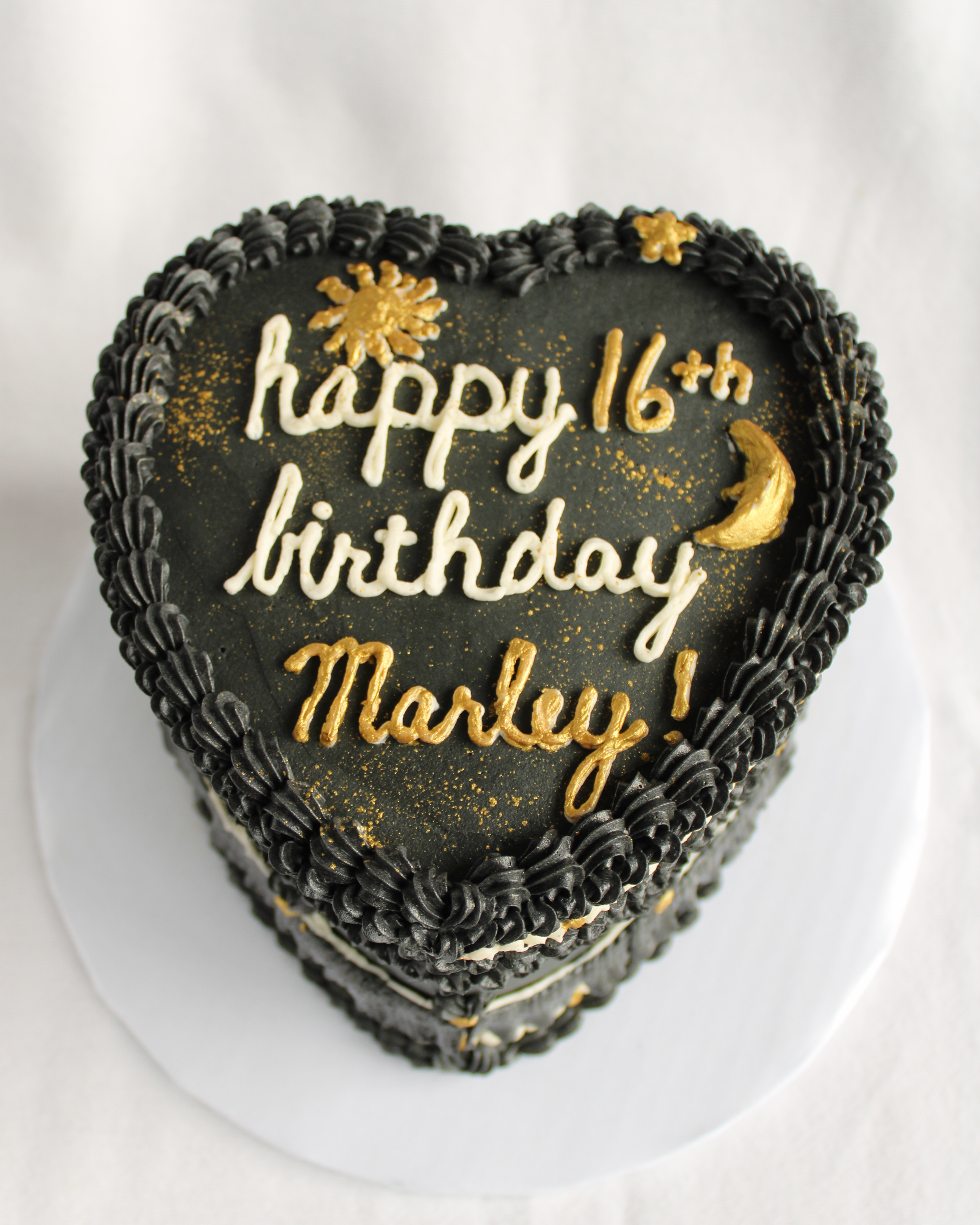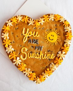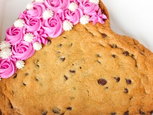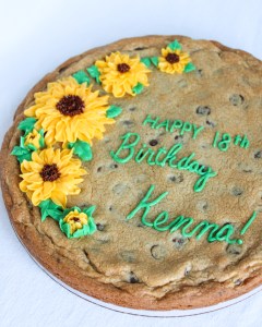 12″ Round or Heart shaped cookie cakes are approximately 1″ thick, and decorated with my crusting buttercream