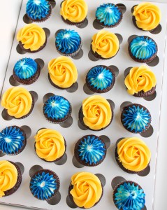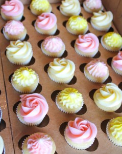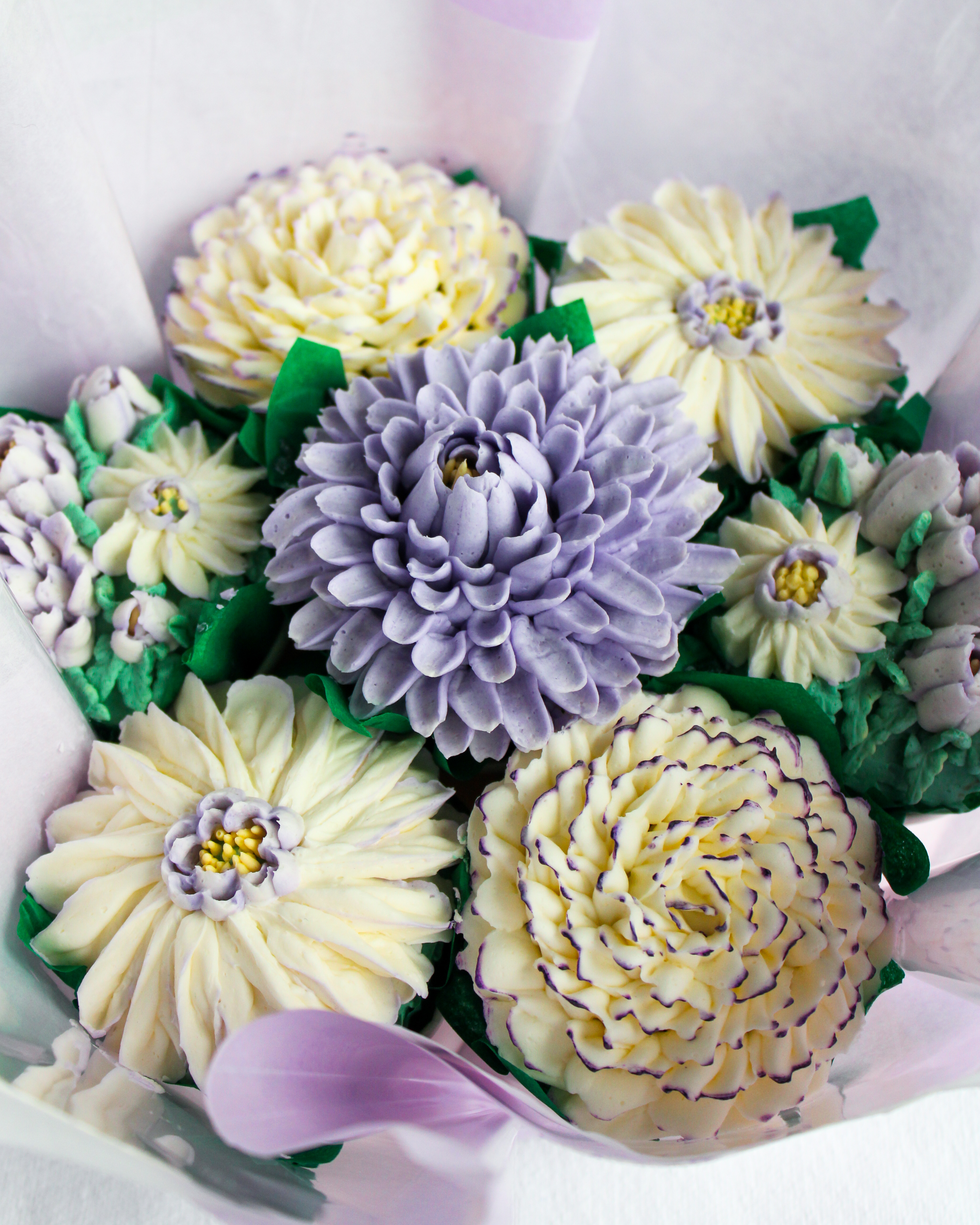 Two bite cupcakes can be topped with a textured mound, mini rosette, or my deluxe flowers